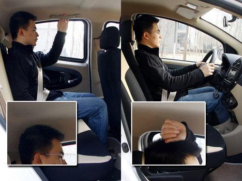 雖然前后空間足夠使用,但是從上圖我們可以看到,熊貓的后排頭部空間優(yōu)化效果有些差強人意,不到175cm的身高的空間展示者在其后排已經(jīng)接近于“頂天立地”,如果身高更高一些的話……