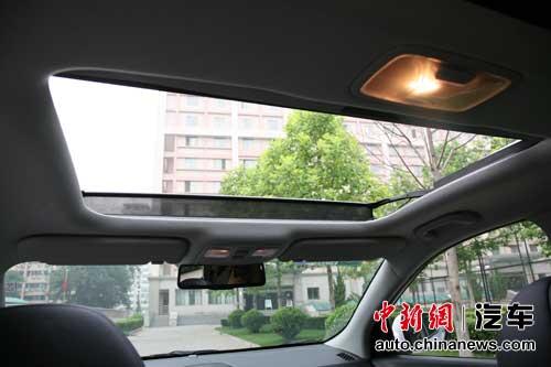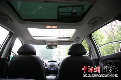圖注:雙天窗可能是這ix35上最奢華的配置。若不是有那道支撐車體強度的橫梁擋在中間,就是真正的全景天窗了。不過即使這樣,前半部54cm×72cm的開啟面積已然足夠大了。