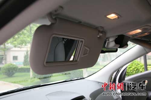 圖注:ix35的遮陽板化妝鏡很有意思,雖然兩側(cè)都帶有照明燈,燈的開關(guān)卻是獨立的,需要按動開關(guān)才能打開。不過遮陽板在合上時剛好會觸動開關(guān),關(guān)掉照明燈,倒是不用擔(dān)心會因為忘記關(guān)燈而把電瓶耗干。