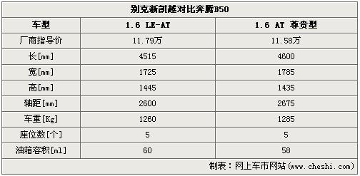 從車身尺寸來看,新凱越的三圍是:4515mm*1725mm*1445mm,B50的長寬高是:4600mm*1785mm*1435mm。在長、寬兩個項(xiàng)目上,身材更加魁梧的B50優(yōu)勢相對明顯,為車內(nèi)腿部空間和橫向舒展性的優(yōu)良感受奠定基礎(chǔ);車身高度上新凱越略占優(yōu)勢,乘客頭部的空間相對由優(yōu)勢。