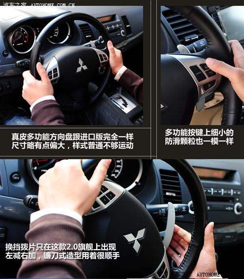 除了這兩樣標(biāo)準(zhǔn)配置以外,翼神還有兩個亮點,第一個即高配車型上的儀表盤,中央顯示屏色彩相當(dāng)炫目,非常漂亮!不光是視覺效果好,可以顯示的行車信息也是相當(dāng)?shù)呢S富,可謂應(yīng)有盡有;第二個則是換擋撥片,在2.0升旗艦版車型上面提供了與進口Lancer EX相同的撥片,而且在實際使用中的反應(yīng)很靈敏迅速。不過要想真正追求駕駛樂趣,顯然手動擋車型才能滿足。換擋行程很短,有一定的吸入感,既緊湊又不會生硬,這種感覺對于年輕人來說肯定夠誘惑,雖然說這款來自愛信的變速箱并不像CVT一樣是進口的。
