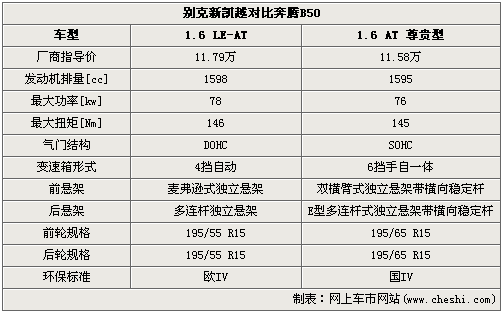 別克新凱越現(xiàn)在縮小了產(chǎn)品線,留下兩款搭載1.6L的發(fā)動(dòng)機(jī)車型。這款1.6L發(fā)動(dòng)機(jī)最大輸出功率為78kw,最大輸出扭矩為146Nm,比起奔騰B50車型的1.6L發(fā)動(dòng)機(jī)在功率上多出了2Kw,扭矩超出1Nm,再加上奔騰B50比新凱越多出的25Kg的車重,動(dòng)力方面稍顯弱勢。懸架部分奔騰B50優(yōu)勢明顯,前懸架雙橫臂式獨(dú)立前懸架帶橫向穩(wěn)定桿、后懸架E型多連桿式獨(dú)立后懸架帶橫向穩(wěn)定桿,對車身在過彎的是支撐更顯運(yùn)動(dòng)感覺,而經(jīng)過通用細(xì)心調(diào)教的新凱越則是以前懸架麥弗遜式獨(dú)立式、多連桿獨(dú)立后懸架的配合突出舒適感受。