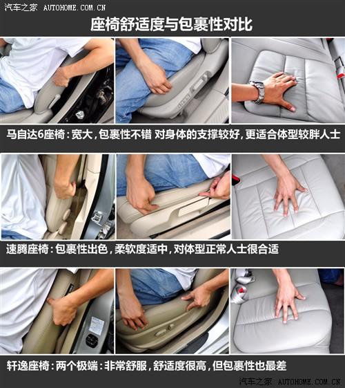 在這三款車中,中型車的馬自達(dá)6具有最寬大的座椅和三組座椅記憶,只是他的天窗面積實(shí)在有點(diǎn);速騰的的配置影響了便利性,但卻是三款車中唯一有后排出風(fēng)口的;軒逸的座椅就像家里的沙發(fā)一些,而且在開門的瞬間還可以自動(dòng)后撤來方便上車,但幾乎沒什么包裹性可言,不利于高速行駛。