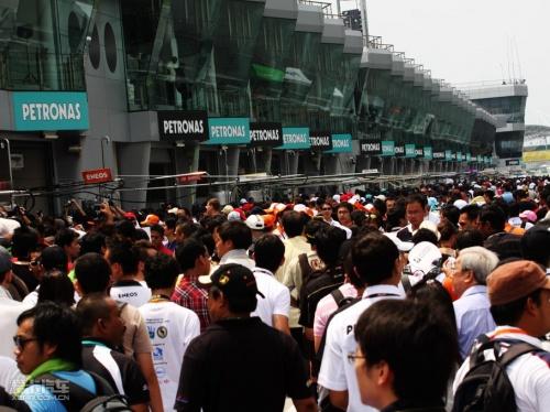 維修通道開(kāi)放時(shí)大量觀眾涌入,可見(jiàn)SUPER GT的火爆場(chǎng)面↑