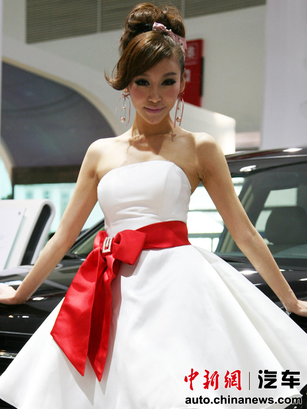 北京車展群芳競艷:靚模一襲白裙秀香肩