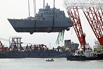 “天安”號(hào)艦首出水