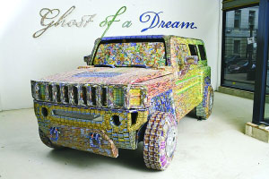 一輛用價值3.5萬美元已兌獎的彩票制作的悍馬H3近日在美國紐約亮相,該車的擋風玻璃、后視鏡、輪胎等都是用廢棄彩票覆蓋而成。