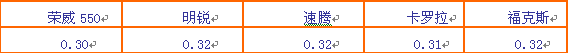 市場(chǎng)主流車(chē)型風(fēng)阻系數(shù)