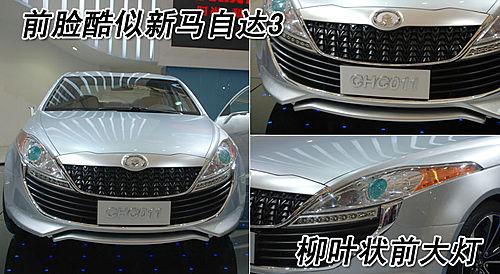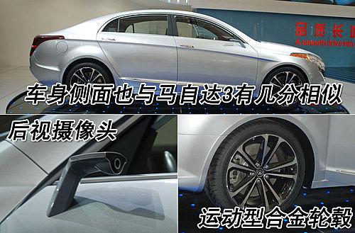 作為長城汽車的首款C級車,CHC011的前臉與新馬自達3非常相似,尤其是進氣格柵的造型。這款產品目前還是概念車型,大燈采用的是柳葉型設計,不知道量產后會不會有太大的變化。