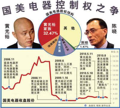 綜觀整個(gè)事件,失去人身自由的黃光裕隔空應(yīng)戰(zhàn)自如,只擁有1.47%國(guó)美股權(quán)的陳曉“以小博大”,對(duì)抗擁有32.47%股權(quán)的控制權(quán),看似不可為,實(shí)則都在國(guó)美特有公司規(guī)則下合法騰挪