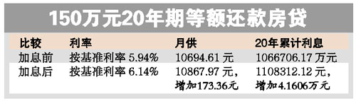 貸款利率上調(diào),也令貸款企業(yè)和貸款買房買車的市民貸款成本上升。不過,由于銀行對首套房貸實行優(yōu)惠利率,對于能獲取下浮利率的首套房貸客戶而言,此次加息帶來的實際影響將比加息幅度要小。以此前獲七折優(yōu)惠利率的房貸客戶為例,打完折后,其承擔的實際利率,將由此前的4.158%上調(diào)為4.298%,實際上調(diào)幅度只有0.14個百分點。
