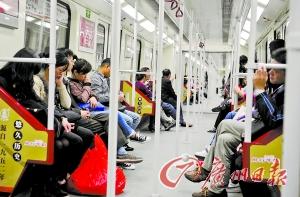 家住五山的陳伯昨日坐三號(hào)線轉(zhuǎn)一號(hào)線前往長(zhǎng)壽路去約朋友喝茶,路上不但有乘客為他讓座,車(chē)內(nèi)也很寬松。
