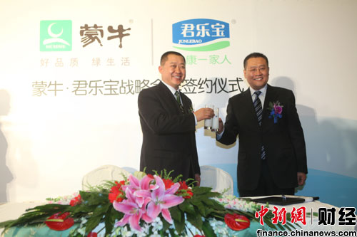 中新網(wǎng)11月22日電 蒙牛乳業(yè)集團(tuán)和君樂寶乳業(yè)22日在北京聯(lián)合召開戰(zhàn)略合作新聞發(fā)布會(huì),蒙牛將投資4.692億元持有君樂寶乳業(yè)51%股權(quán),成為君樂寶的最大股東。此次合作將成為中國乳業(yè)近兩年來影響最大的一次合作,預(yù)示著中國乳業(yè)聯(lián)合、重組、兼并收購“浪潮”的來臨。