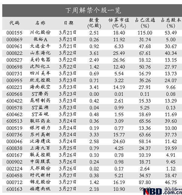另外福建南紙3月27日有2.18億股定向增發(fā)股份解禁上市。在公司2008年3月定向增發(fā)中,華泰資產(chǎn)管理有限公司認(rèn)購(gòu)了4000萬股,中國(guó)人保資產(chǎn)管理股份有限公司和南平市人民政府國(guó)資委分別認(rèn)購(gòu)了3000萬股和2500萬股,而《天府早報(bào)》社等5家股東各認(rèn)購(gòu)了1000萬股。公司在去年曾有過一次每10股轉(zhuǎn)增5股,因此上述股東認(rèn)購(gòu)的股份也相應(yīng)的從1.45億股增加到2.18億股。當(dāng)初8家股東的認(rèn)購(gòu)價(jià)格為5.73元/股,而公司股價(jià)復(fù)權(quán)后已經(jīng)達(dá)到7.52元,賬面盈利高達(dá)31.24%。市場(chǎng)人士表示,相比其他機(jī)構(gòu)認(rèn)購(gòu)中金黃金、西飛國(guó)際而深套其中不同,這8家機(jī)構(gòu)幸運(yùn)很多,在去年整個(gè)市場(chǎng)低迷的情況還能獲得31.24%的賬面收益,因此在他們所持股份解禁上市后,套現(xiàn)的可能性會(huì)相當(dāng)大,投資者也需要格外警惕。(每經(jīng)實(shí)習(xí)記者 劉明濤)