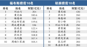 繼本月初胡潤(rùn)“率先”公布《2008胡潤(rùn)百富榜》之后,記者昨日在《福布斯》中文版上也看到了其《2008年中國富豪榜》,或許刻意強(qiáng)調(diào)與胡潤(rùn)的區(qū)別,或許這一個(gè)月來全球資本市場(chǎng)動(dòng)蕩影響確實(shí)不小,福布斯的榜單,不僅前10名與胡潤(rùn)座次“大變樣”,就連“身家”也是相差甚遠(yuǎn)。福布斯昨日披露的首富劉永行在胡潤(rùn)榜單中僅列第5,胡潤(rùn)的首富黃光裕也被福布斯放在第2的位置上,而財(cái)富總額也由胡潤(rùn)榜中的430億元驟降至183.6億元。另外,楊惠妍在胡潤(rùn)榜里財(cái)富總額達(dá)330億元,但在福布斯榜里是151億元。福布斯制榜人指出,富豪的財(cái)產(chǎn)是根據(jù)最新股價(jià)得出的。