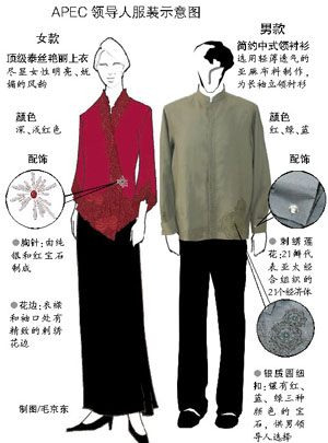 按照慣例,APEC領(lǐng)導(dǎo)人會(huì)穿什么樣的服飾亮相向來(lái)被視為“高度機(jī)密”。但這次籌委會(huì)一反傳統(tǒng),預(yù)先展示為與會(huì)的21國(guó)領(lǐng)導(dǎo)人設(shè)計(jì)的服飾,讓海內(nèi)外媒體先睹為快。