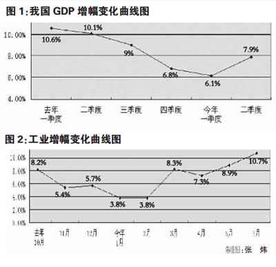 國家統(tǒng)計局總經(jīng)濟師姚景源介紹,中國經(jīng)濟去年下半年出現(xiàn)的持續(xù)下行的趨勢得到遏制,從GDP增長幅度可以明顯地看到這種態(tài)勢(圖1)。姚景源還分別從生產(chǎn)法和支出法兩個角度,對宏觀經(jīng)濟進行了解析。