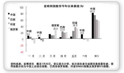 金融海嘯之后,中國、巴西、俄羅斯、印度在經(jīng)濟增長以及財政上的表現(xiàn)令人刮目相看,股市今年以來平均漲幅逾六成,中國的漲幅超過八成,將成熟國家遠遠拋在后面