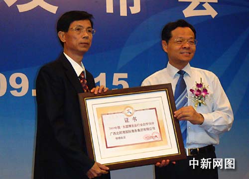 發(fā)布會(huì)上,中共廣西壯族自治區(qū)委員會(huì)常委、自治區(qū)副主席陳武為中國銀行廣西分行、廣西中煙、廣西北部灣國際港務(wù)集團(tuán)有限公司、上海通用汽車有限公司等此次與中國—東盟博覽會(huì)簽署合作伙伴協(xié)議的38家企業(yè)頒發(fā)證書,表明雙方合作的極大誠意。