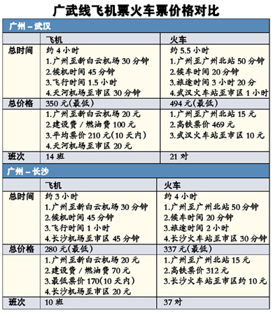 從此可以看出,武廣沿線(xiàn),飛機(jī)票便宜過(guò)火車(chē)票已經(jīng)成為常態(tài)。