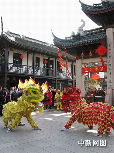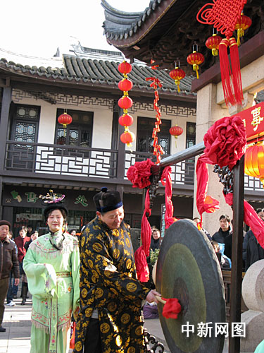 中新網(wǎng)蘇州一月一日(姚靜)古鎮(zhèn)周莊今天張燈結(jié)彩,喜氣洋洋,貞豐澤國(guó)牌樓兩側(cè)彩旗飄揚(yáng),全福路上龍舞獅躍,寓意著國(guó)泰民安、風(fēng)調(diào)雨順。身穿彩袍、腳蹬皂靴的周莊巨賈“沈萬(wàn)三”攜著丫鬟、家丁百余人親自為古鎮(zhèn)開(kāi)莊迎客。
