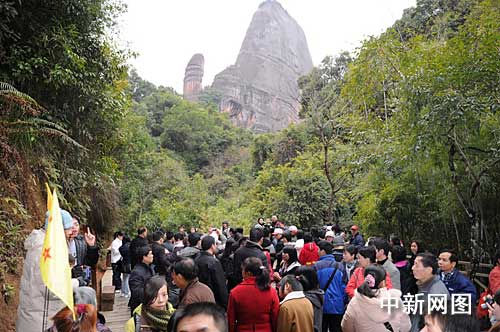 中新網(wǎng)韶關(guān)1月28日電(馮昶 劉加青 李正紅)今天是大年初三,廣東丹霞山景區(qū)內(nèi)游人如鯽,迎來了牛年春節(jié)旅游首個接待高峰。