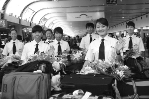 國航宣傳部門稱,這6名女飛行員回國后,將會完成在校畢業(yè)論文,同時(shí)將在國航完成大型民航客機(jī)的改裝訓(xùn)練,大約在明年7月加入航班飛行。(記者李天宇)