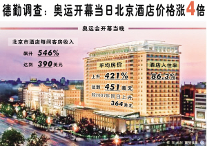從8月底開始,隨著各國(guó)運(yùn)動(dòng)員、教練員、觀眾及記者的陸續(xù)離京,北京各大賓館入住率必然出現(xiàn)一定程度的下降,酒店價(jià)格的大幅度跳水也是必然趨勢(shì)。