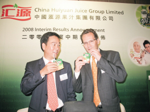匯源果汁(01886.HK)半年業(yè)績(jī)說明會(huì)昨日在香港召開,公司主席兼總裁朱新禮因參加其他會(huì)議而缺席,代表公司回答媒體提問的公司副總裁兼首席財(cái)務(wù)官吳育強(qiáng)表示,可口可樂收購(gòu)匯源果汁的價(jià)格是經(jīng)過慎重考慮,并且得到三大股東同意的。