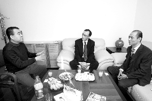 國美電器代理主席陳曉(中)帶隊回訪家住望京的消費者樸先生。記者 吳江 攝