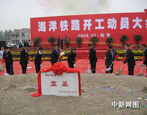 海洋鐵路為國家二級鐵路,全長七十七公里,總投資達十八點三億元。其中,跨海鐵路大橋自江蘇南通海安至如東的洋口港鐵路終點站引出,全長十八點七公里,由上海鐵路局和如東縣雙方共同建設,二〇一〇年將全面建成通車。完