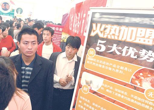 記者在采訪中發(fā)現(xiàn),連鎖加盟“騙局”不在少數(shù)。剛畢業(yè)的劉平邦加盟“馬來西亞煎餅”,悉數(shù)交上2萬元后卻換來一個價值幾十元的爐具;在雜志上看到豬血里可以提煉SOD,而且公司還承諾回收提煉產(chǎn)品,溫先生交了5萬元加盟費(fèi),卻換來一大堆豬血……