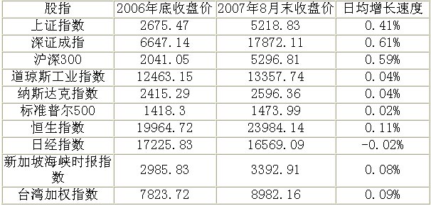 由表2可見,在2006年12月31日至2007年8月31日這段期間,我國股指的日均增速遠遠高于境外各主要股指,確實可以說是處于暴漲期。