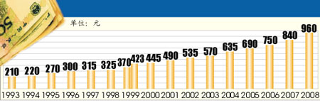 3月25日舉行的市政府新聞發(fā)布會(huì)透露,從今年4月1日起,上海市月最低工資標(biāo)準(zhǔn)從840元調(diào)整為960元,小時(shí)最低工資標(biāo)準(zhǔn)從7.5元調(diào)整為8元。這是上海自1993年建立最低工資制度以來,第16次調(diào)整最低工資標(biāo)準(zhǔn),也是近16年來最低工資標(biāo)準(zhǔn)增加數(shù)額最大的一次。今日上海市政府對工資標(biāo)準(zhǔn)上調(diào)進(jìn)行了解讀。