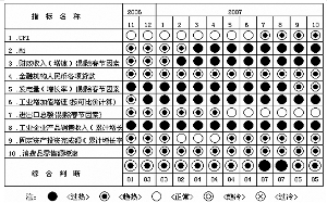 在構(gòu)成綜合警情指數(shù)的10個指標中,變化與9月份基本相同。其中,財政收入、M1、工業(yè)增加值增速和工業(yè)企業(yè)銷售收入等四個指標繼續(xù)處于紅燈區(qū),并且已經(jīng)持續(xù)了較長時間;金融機構(gòu)人民幣貸款增速、固定資產(chǎn)投資增速、消費品零售額增速、發(fā)電量增速和CPI五個指標處于黃燈區(qū),其中發(fā)電量增速9月份開始由紅燈區(qū)進入黃燈區(qū);在10個指標中,只有進出口總額增速處于綠燈區(qū)。