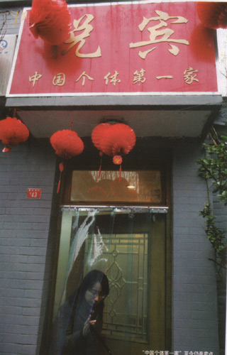 飯店的門臉不大,上面掛著一塊小牌子,寫著“中國(guó)個(gè)體第一家”。