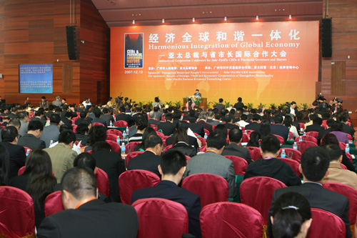 本次大會(huì)開(kāi)幕式,由廣州市副市長(zhǎng)陳明德主持,張廣寧市長(zhǎng)和鮑勃•霍克主席分別致辭。張廣寧市長(zhǎng)指出,當(dāng)今世界,經(jīng)濟(jì)全球化和區(qū)域經(jīng)濟(jì)一體化進(jìn)程不斷加快,為各國(guó)、各地區(qū)經(jīng)濟(jì)要素在全球范圍的優(yōu)化配置和經(jīng)濟(jì)效益的提高創(chuàng)造了有利條件。但是目前全球化進(jìn)程也充滿(mǎn)矛盾和不均衡,如何正確認(rèn)識(shí)和妥善應(yīng)對(duì)全球化,建立長(zhǎng)期聯(lián)系的穩(wěn)定有效機(jī)制,推進(jìn)全球化進(jìn)程朝著均衡、普惠、共贏的方向發(fā)展,創(chuàng)建共同繁榮的和諧世界,是許多具有遠(yuǎn)見(jiàn)卓識(shí)的人士共同關(guān)心的重大問(wèn)題。張市長(zhǎng)呼吁,亞太地區(qū)各方更應(yīng)進(jìn)一步加強(qiáng)相互間的交流與溝通,增進(jìn)彼此間的合作,共同促進(jìn)亞太地區(qū)乃至全球經(jīng)濟(jì)的繁榮和持續(xù)發(fā)展。