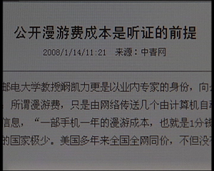 2008年1月22日,多年來(lái)備受質(zhì)疑的手機(jī)漫游費(fèi)終于踏上了破冰之旅,在北京河南大廈四層的國(guó)際會(huì)議廳里,降低移動(dòng)電話國(guó)內(nèi)漫游通話費(fèi)上限標(biāo)準(zhǔn)聽證會(huì)如期舉行。而會(huì)場(chǎng)外的狹窄通道,早已被各路媒體圍得水泄不通,大家最關(guān)心的問(wèn)題莫過(guò)于“漫游”在公眾視野范圍外的漫游費(fèi)成本是否在聽證會(huì)上予以公開?