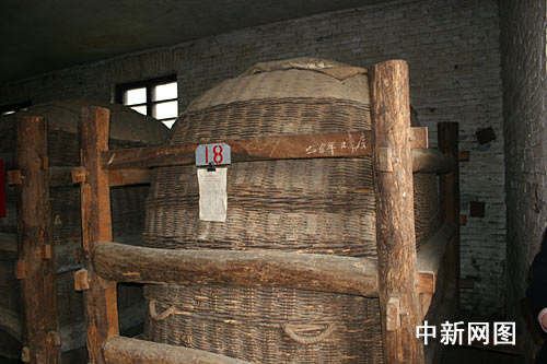 在1956年建造的青磚紅瓦的西鳳酒儲(chǔ)存庫(kù)房?jī)?nèi),放著兩排大酒海,大酒海是用一種產(chǎn)自秦嶺深處多年生的特殊藤條編制外殼,然后先用豆腐等原料從里面填糊藤條的縫隙,等干燥后,先后在里面裱糊20層白棉布,等再次干燥后,再在其表面涂上蜂蠟和菜籽油養(yǎng)護(hù)一段時(shí)間才可投入使用。庫(kù)房?jī)?nèi)存儲(chǔ)著各個(gè)時(shí)期封存的西鳳酒,從1957年到20世紀(jì)80年代,網(wǎng)絡(luò)媒體記者多是80后,紛紛找與自己“同齡”的大酒海合影。