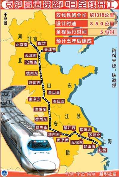 近日開工的京滬高速鐵路將創(chuàng)造多個世界及中國“之最”。