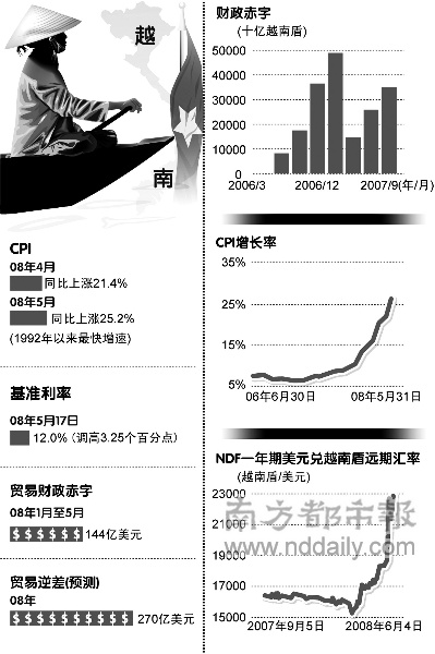 而通貨膨脹在過去數(shù)月里一直是越南經(jīng)濟(jì)決策官員的主要課題,越南當(dāng)?shù)?月份的消費者物價通脹較2007年底時的12.5%,上升超過一倍至25.2%.