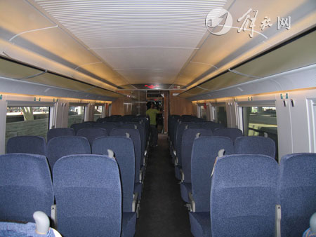 坐上列車,座椅猶如飛機(jī)經(jīng)濟(jì)艙座椅,前有可放下的桌子、椅子也可往下躺,同時還可以360度旋轉(zhuǎn)。每列京津城鐵均掛8節(jié)車廂,每節(jié)車廂都設(shè)置了寬敞的衛(wèi)生間。雖然從0到350公里/小時只需要幾分鐘,但由于車窗設(shè)計了減速玻璃,大多人還是感覺不出來車速,而且設(shè)計師在設(shè)計時還更多地考慮了安全性與舒適性,因而在行車過程中,旅客根本不需要帶安全帶,還可以自由走動。抬頭一看車廂兩側(cè)的顯示屏,卻可以驚喜地發(fā)現(xiàn)車速已達(dá)334公里/小時了。