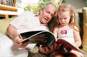 羅杰斯帶著女兒樂樂看圖畫書,她看得津津有味。(圖片來源:臺(tái)灣《商業(yè)周刊》;攝影/張家毓)