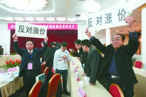 正當(dāng)大家以為他要說(shuō)出意見(jiàn)時(shí),李祥突然站起來(lái),手舉用泡沫板做成的牌子,牌子上貼著四個(gè)黑體字:反對(duì)漲價(jià)。該舉動(dòng)在與會(huì)人員中引起了短暫的騷動(dòng)。隨后他舉著牌子,對(duì)著會(huì)場(chǎng)不同方位的觀眾席來(lái)回展示,這時(shí),坐在他身后不遠(yuǎn)處的一名旁聽(tīng)代表,也舉著類似的牌子,配合著李祥。
