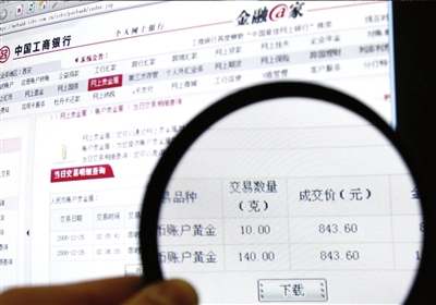 投資者以843.6元每克賣(mài)出工行紙 黃金。本報(bào)記者周民攝