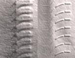 截至目前,假鈔的印刷工藝均是膠印、絲網(wǎng)等平印,質(zhì)量很差。有些假鈔為模仿真鈔的凹印效果,在人像衣服、團(tuán)花及手感線等凹凸位置用堅(jiān)硬金屬磨具進(jìn)行了壓痕處理,觸摸有凹凸效果,應(yīng)仔細(xì)觀察(見下圖)。