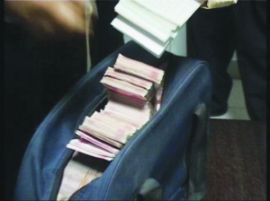就是這個(gè)舊包,裝滿沉甸甸的105萬元現(xiàn)鈔