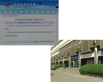 記者:“這里是北京西單民航大廈售票大廳,從今天開始,各航空公司將實行新的運價系統(tǒng),根據(jù)新的計算方法,國內(nèi)航線機票價格上漲已是不爭事實!