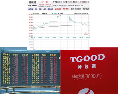 青島特銳德被眾多媒體稱為“創(chuàng)業(yè)板第一股”,第一家上會、第一家審核通過、第一個發(fā)布招股書、并獲得創(chuàng)業(yè)板001號證券代碼。今天,特銳德收盤于44元,較發(fā)行價上漲約85%。當初投資特銳德的7名自然人其身價都已過億。