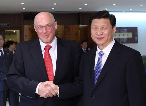 在會見保爾森時,習近平說,中美都是世界上有重要影響的國家。在推動世界經濟復蘇和可持續(xù)增長、處理國際和地區(qū)熱點問題以及維護世界和平與安全等方面,中美兩國擁有廣泛的共同利益,肩負著重要責任。中方一貫高度重視中美關系,愿與美方共同努力,尊重彼此核心利益和重大關切,妥善處理分歧和敏感問題,加強各領域對話、交流與合作,推動中美關系沿著積極合作全面的軌道向前發(fā)展。習近平深入闡述了中方在中美經貿關系、人民幣匯率等問題上的原則立場,期待保爾森繼續(xù)發(fā)揮影響力,為促進中美在經濟金融領域的對話合作和后國際金融危機時期兩國經濟關系健康穩(wěn)定發(fā)展發(fā)揮積極作用。